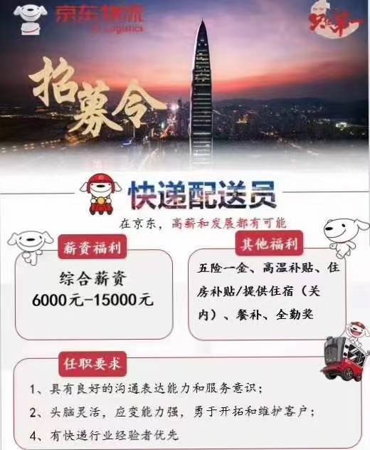 京东快递园洲大量招聘临时工和正式员工