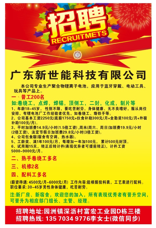 3. 熟手卷绕工,普工等多个岗位
