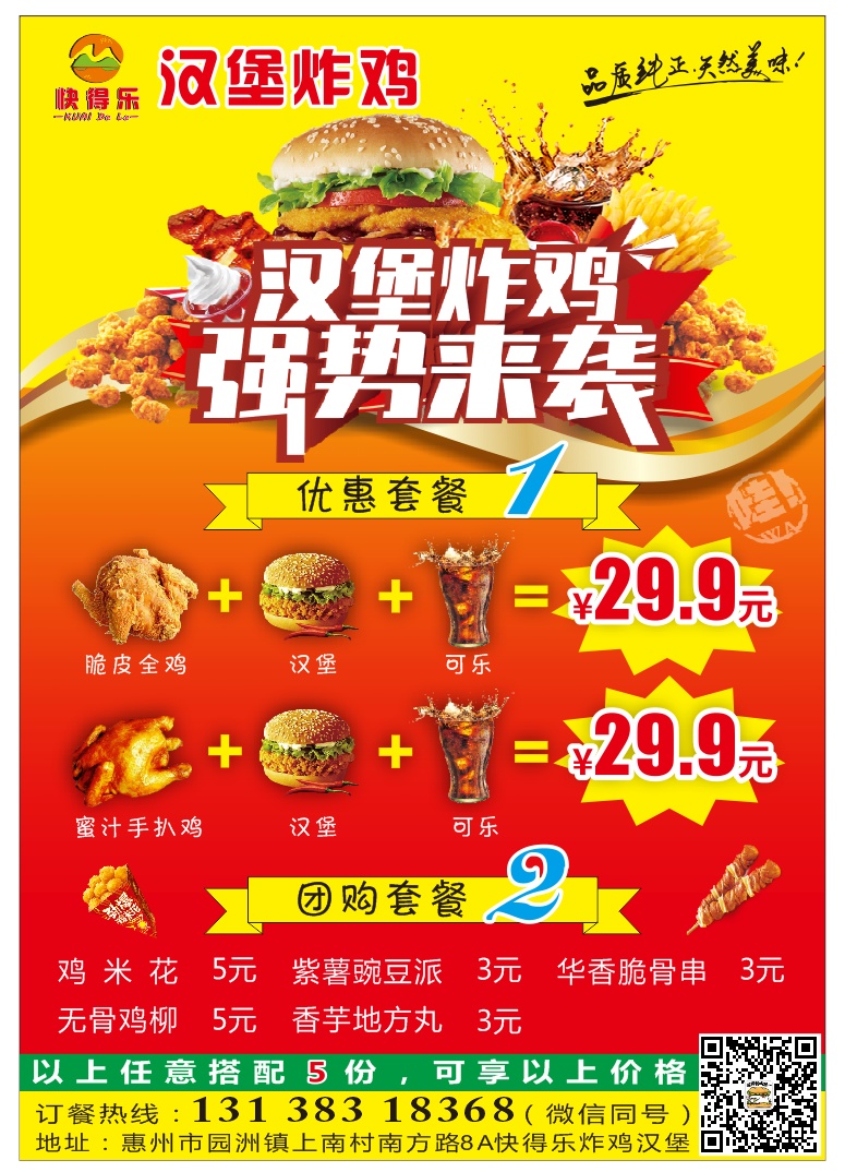 这家炸鸡店真的很不错,汉堡都是买一送一,新开的好多优惠哦,比外面划算很多