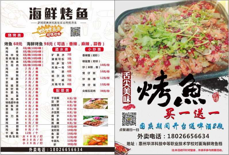 烤鱼买一送一,纸包鸡八折,看过来
