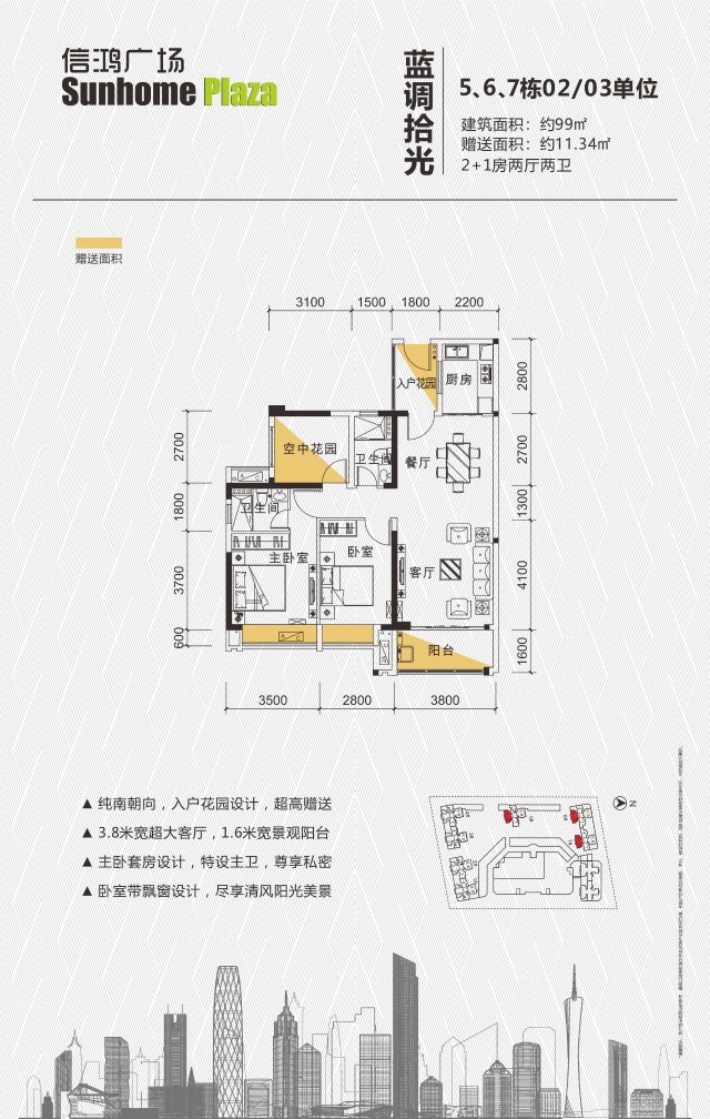 出售信鸿广场100平毛坯三房两厅两卫 原价95万 现售92万 中楼层 朝南