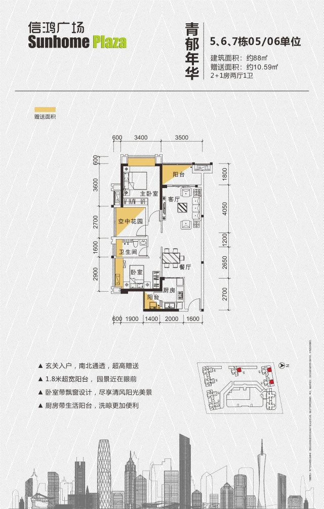 出售信鸿广场 毛坯三房 有一口价75万