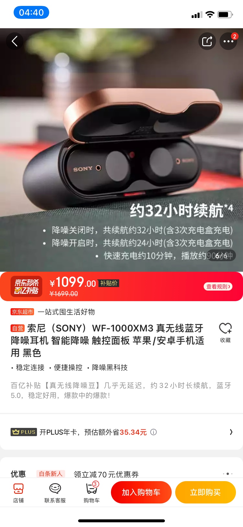 出 只拆封95新 用过几次 索尼(SONY)WF-1000XM3 真无线蓝牙降噪耳机 智能降噪 触控面板 对音质的发烧友值得入手 京东价:1099: 白菜价:750包邮哦