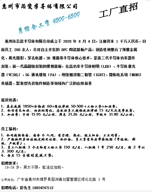 招聘品管员多名