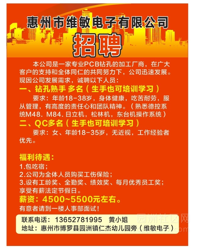 招钻孔操作员多名5000至6000元,普工多名4800至5500元,两班倒12小时制。