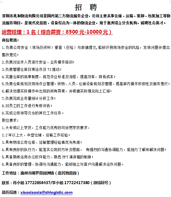 急聘运营经理(8500-10000)