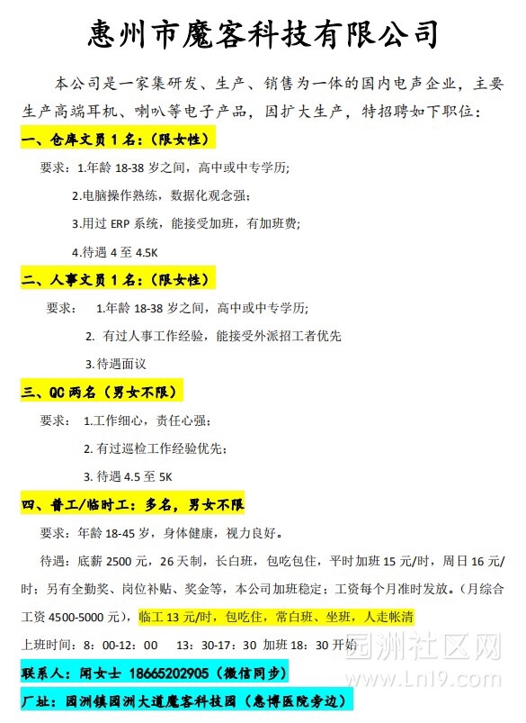 工厂直招普工/临时工