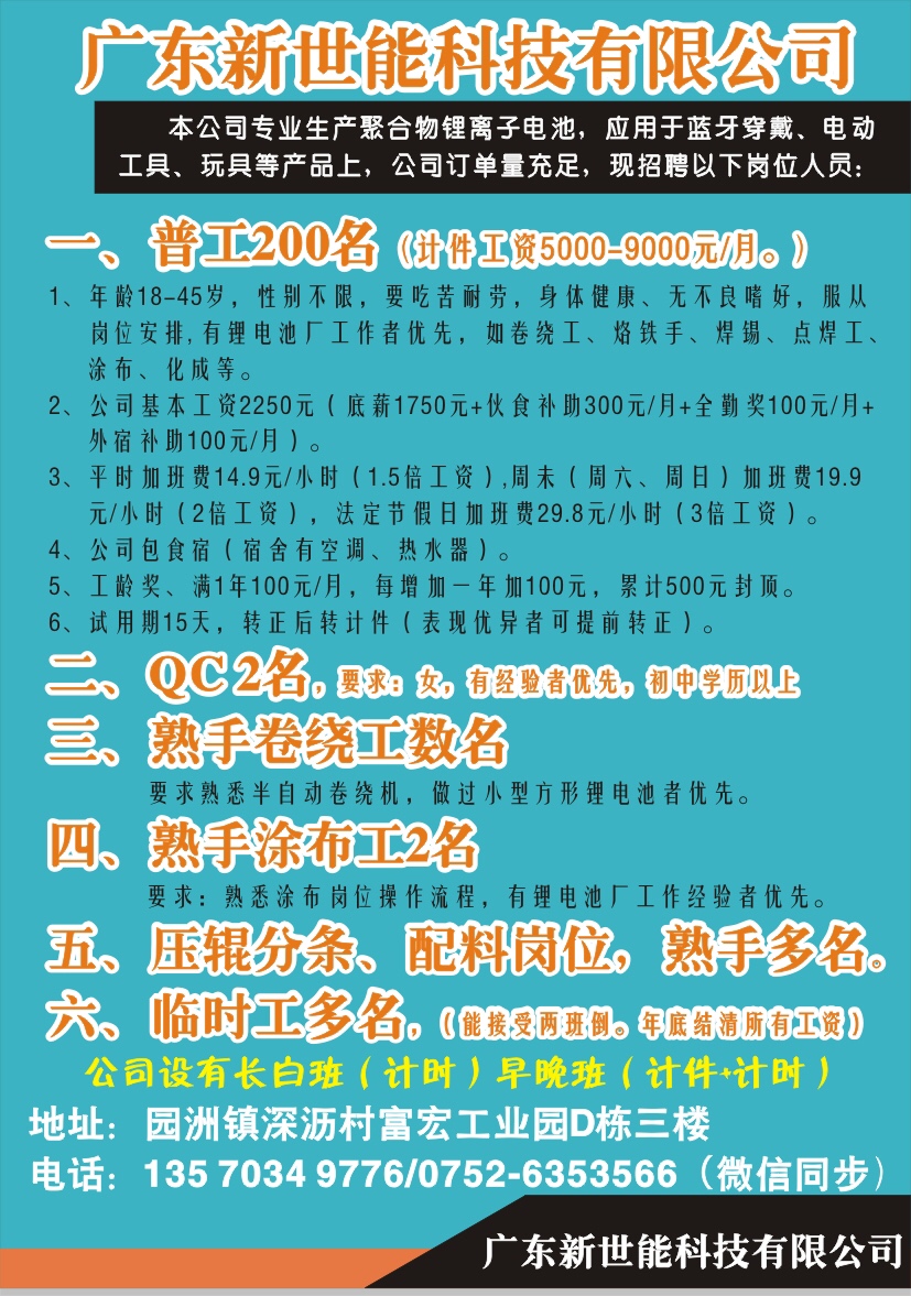 临时工多名(可接受上夜班)