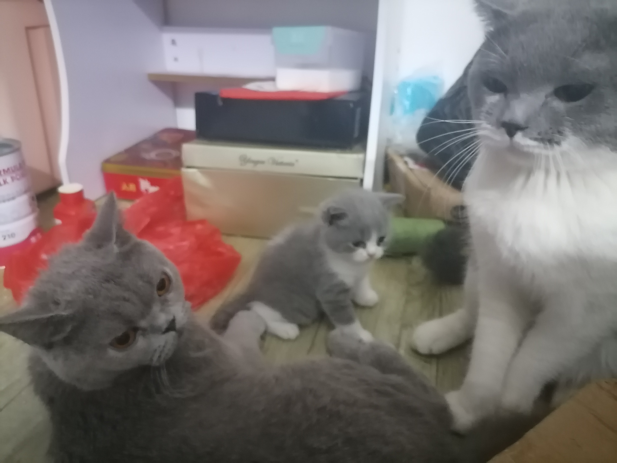 自养的,一只蓝白公1岁半,一只蓝猫母一岁半,一只小正八脸5粉蓝白猫2个半月。全部自己会用猫砂,性格温顺,粘人。因为老婆怀孕,带不回去老家,求有心人收养。