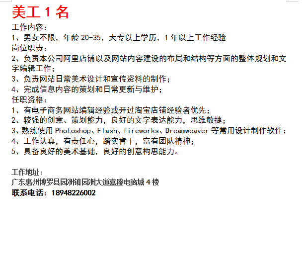 工作地址:园洲镇园洲大道嘉盛电脑城4楼