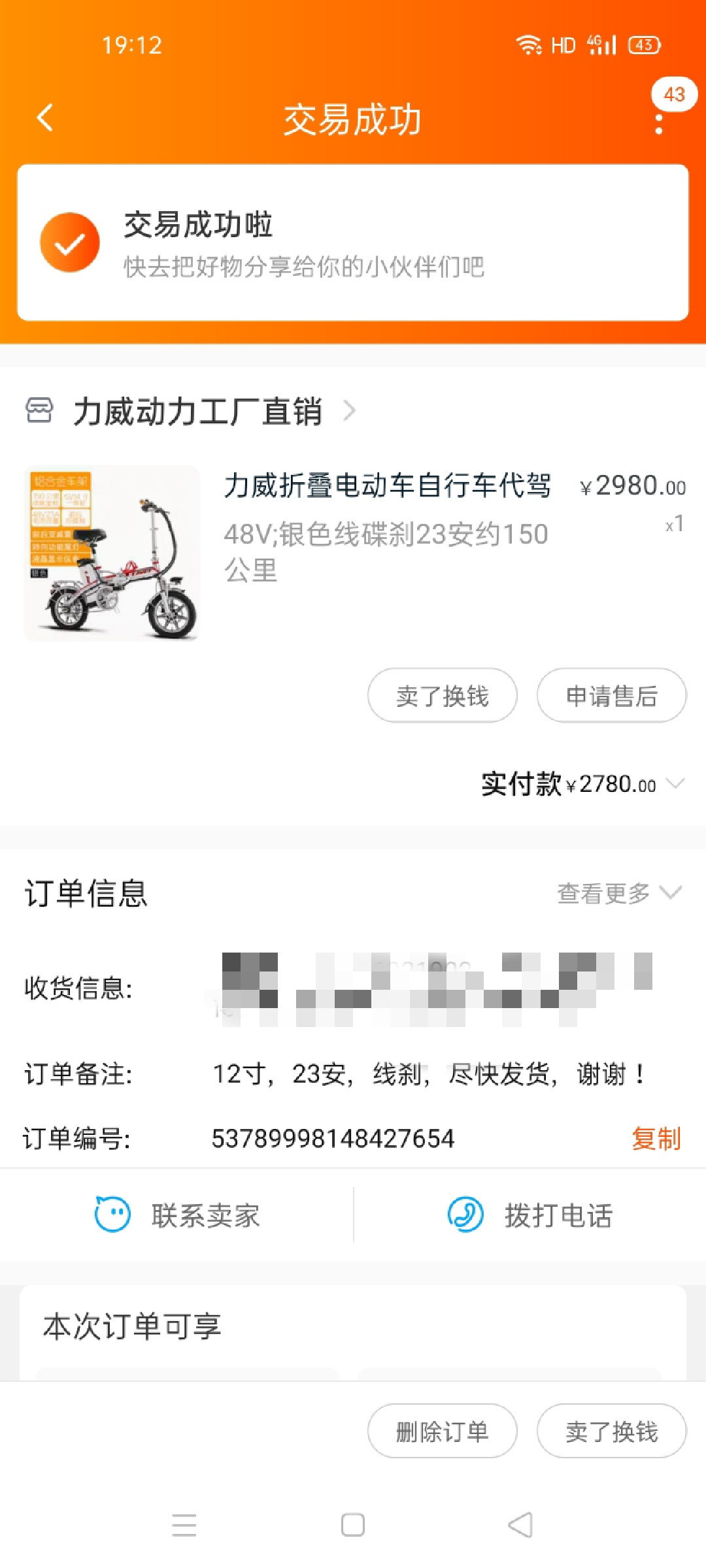 充电不方便便宜处理折叠电动车原价2780买的