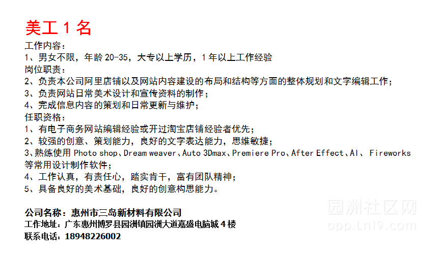 工作地址:园洲镇园洲大道嘉盛电脑城4楼