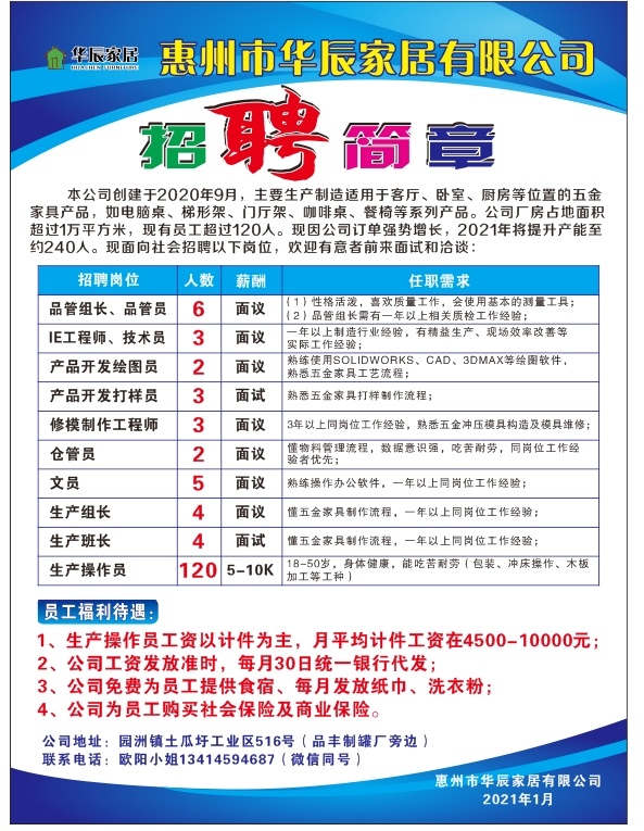 家具厂大量招工
