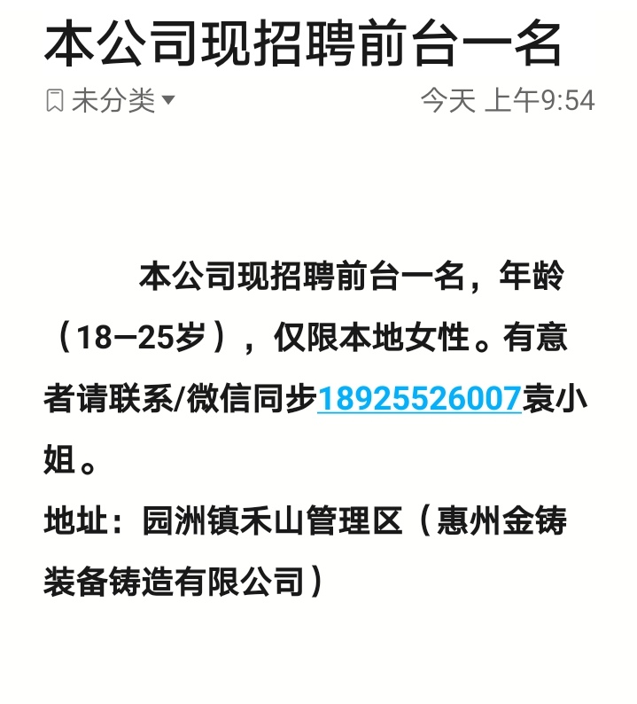 招聘前台一名