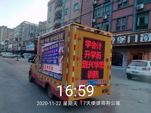 流动传播不受地理位置的限制,可根据客户需求在大街、小巷、社区、商贸区等客户需要的任何目标市场区域内,深入广泛的宣传,由于采用目前流行的LED彩屏作为输出主体,色彩绚丽、立体感十 足,有极强的视觉冲击力。本身这种形式造型独特很容易吸引大众视线,随时随地,精彩传播,让你的品牌创造最大的价值。