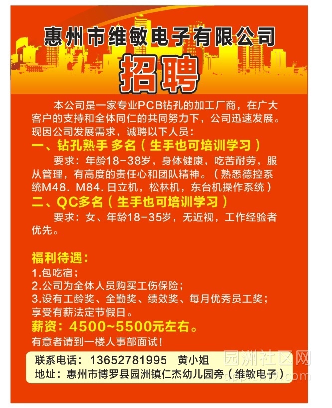 招厨师一名,普工多名,13652781995微信同步