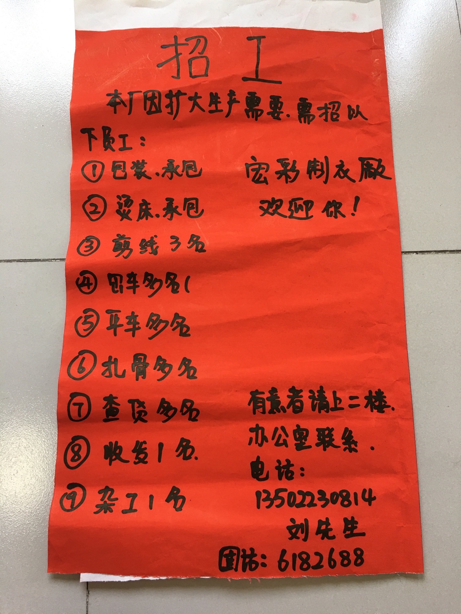 制衣厂招聘