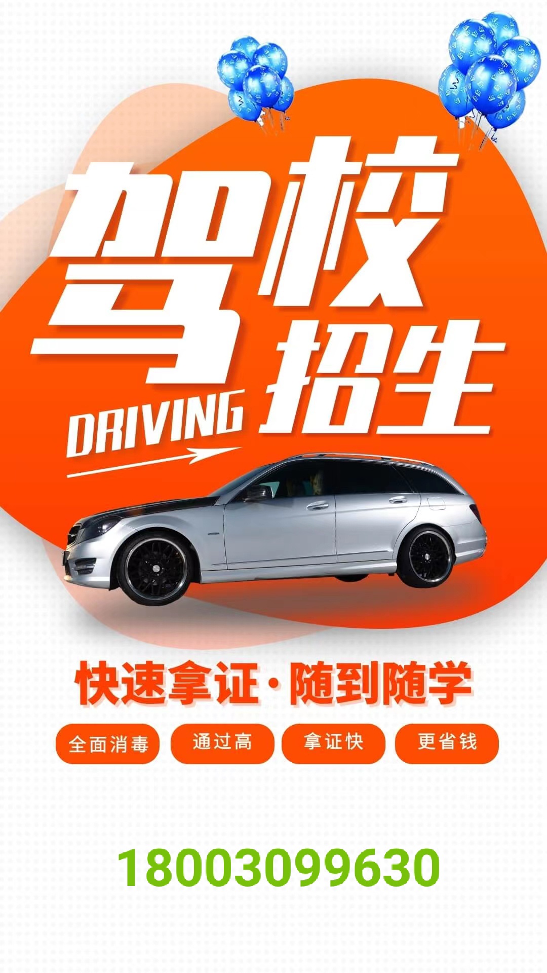 本驾校练车场地大,按着考场场地标准,教学团队专业,并开展文科培训包过班,学员通过率高,马上报名马上练车,招生热线18003099630