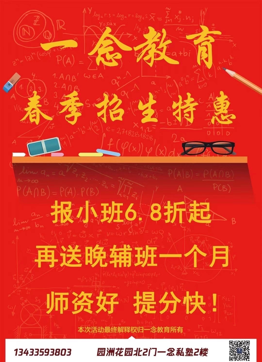 因一念教育业务发展需要,现招聘小学初中教师: