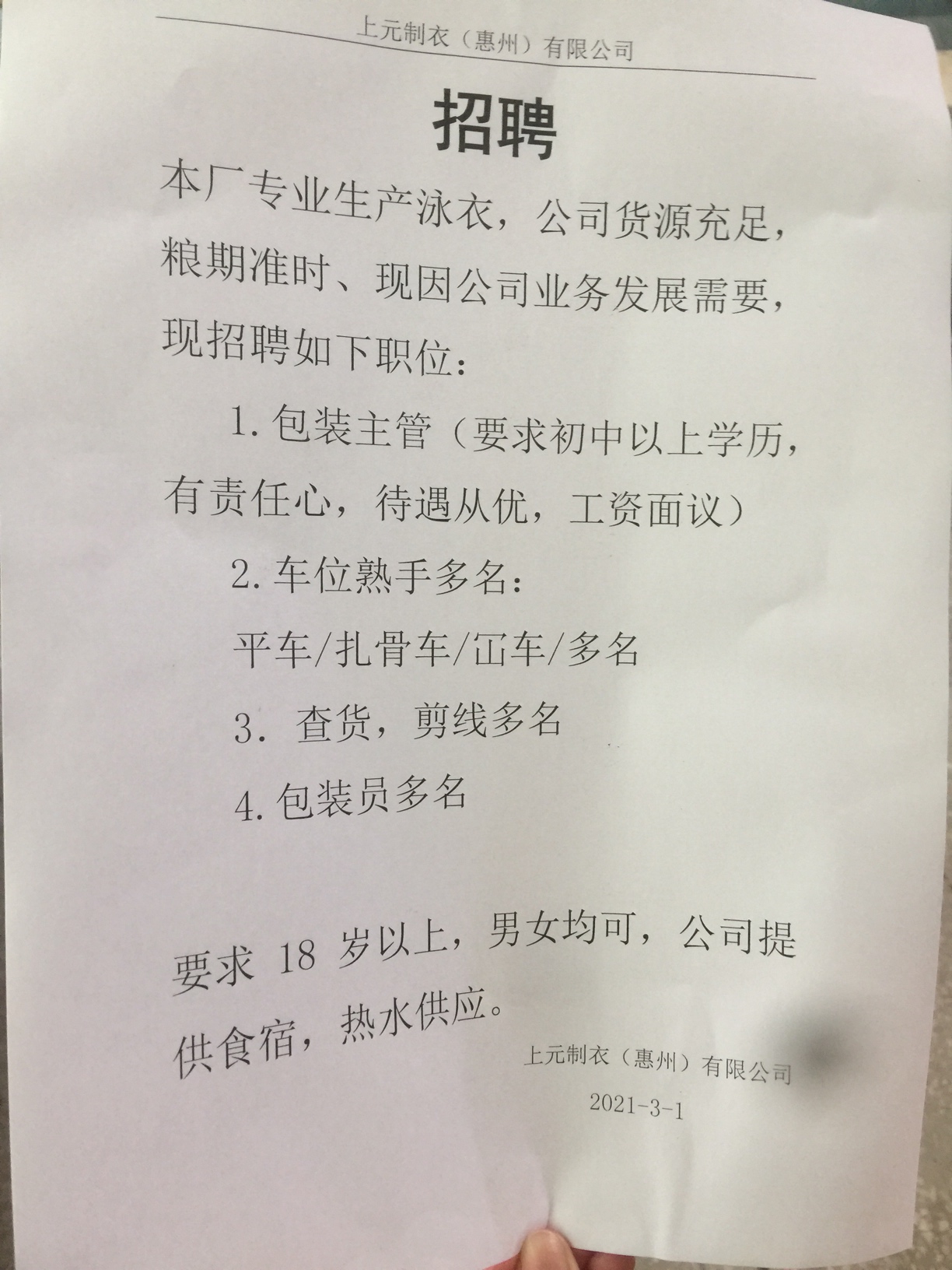 1.包装工多名,