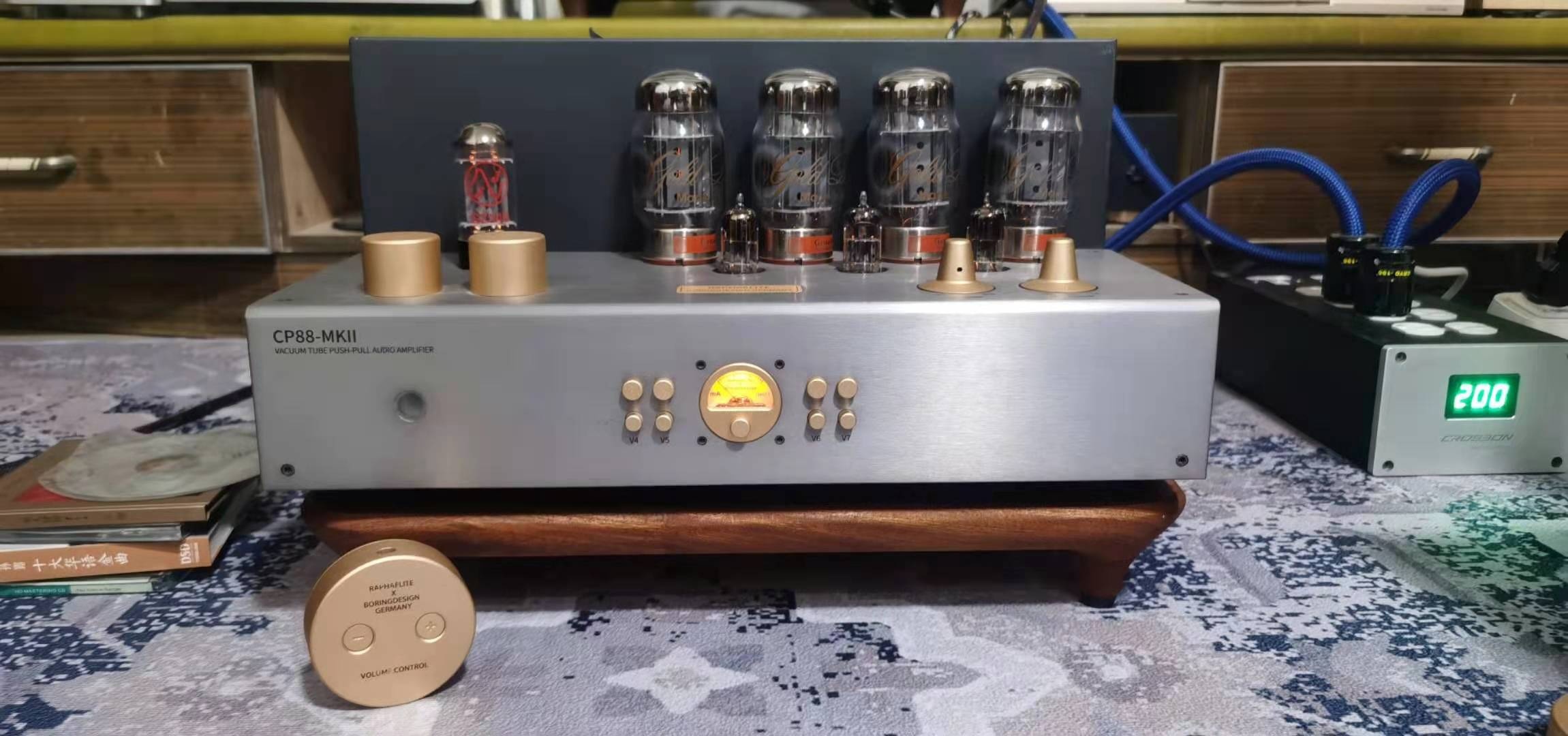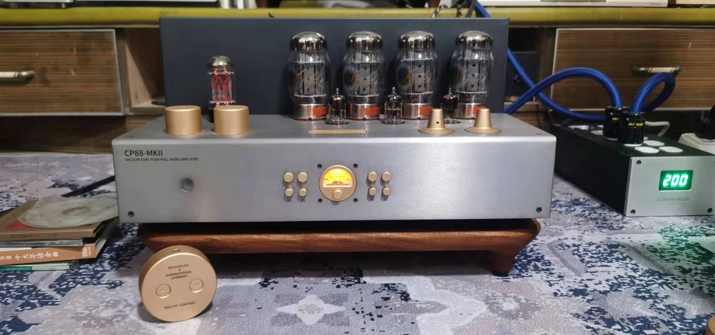 今日出售自用拉菲尔cp88-mkll kt88推挽胆机,成色完美89成新,内部干净无修,仅升级了苏联0.22电容,其如都没动过,机子25公斤左右……