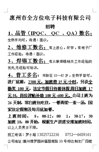 招品管和普工多名