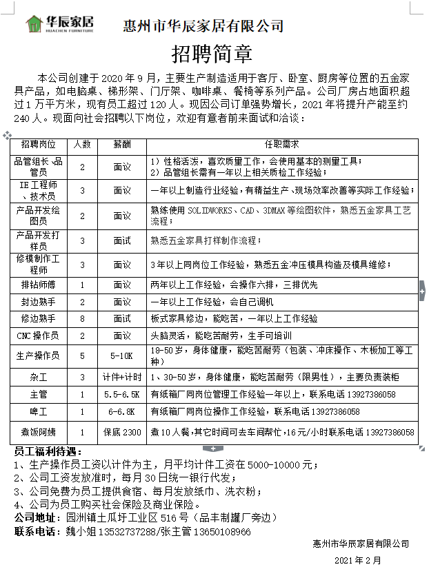 2、主要负责装柜,计件工资;