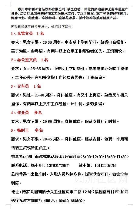 要求:男女不限,20-45周岁,身体健康,服从安排,做满一个月可结清工资或转正员工。