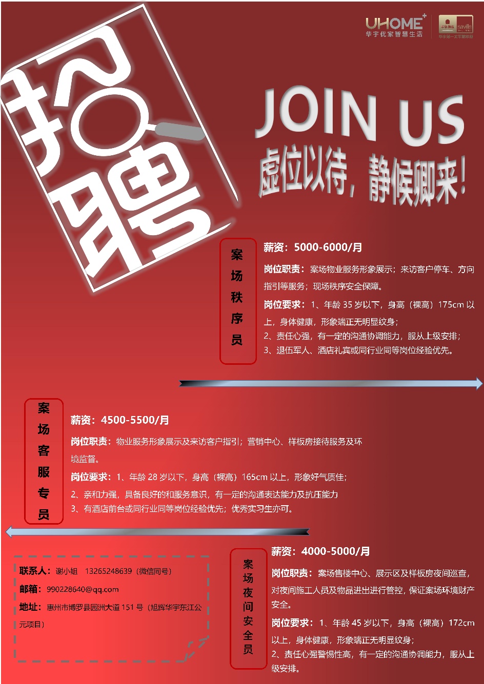 园洲新盘急聘物业客服、安保、保洁