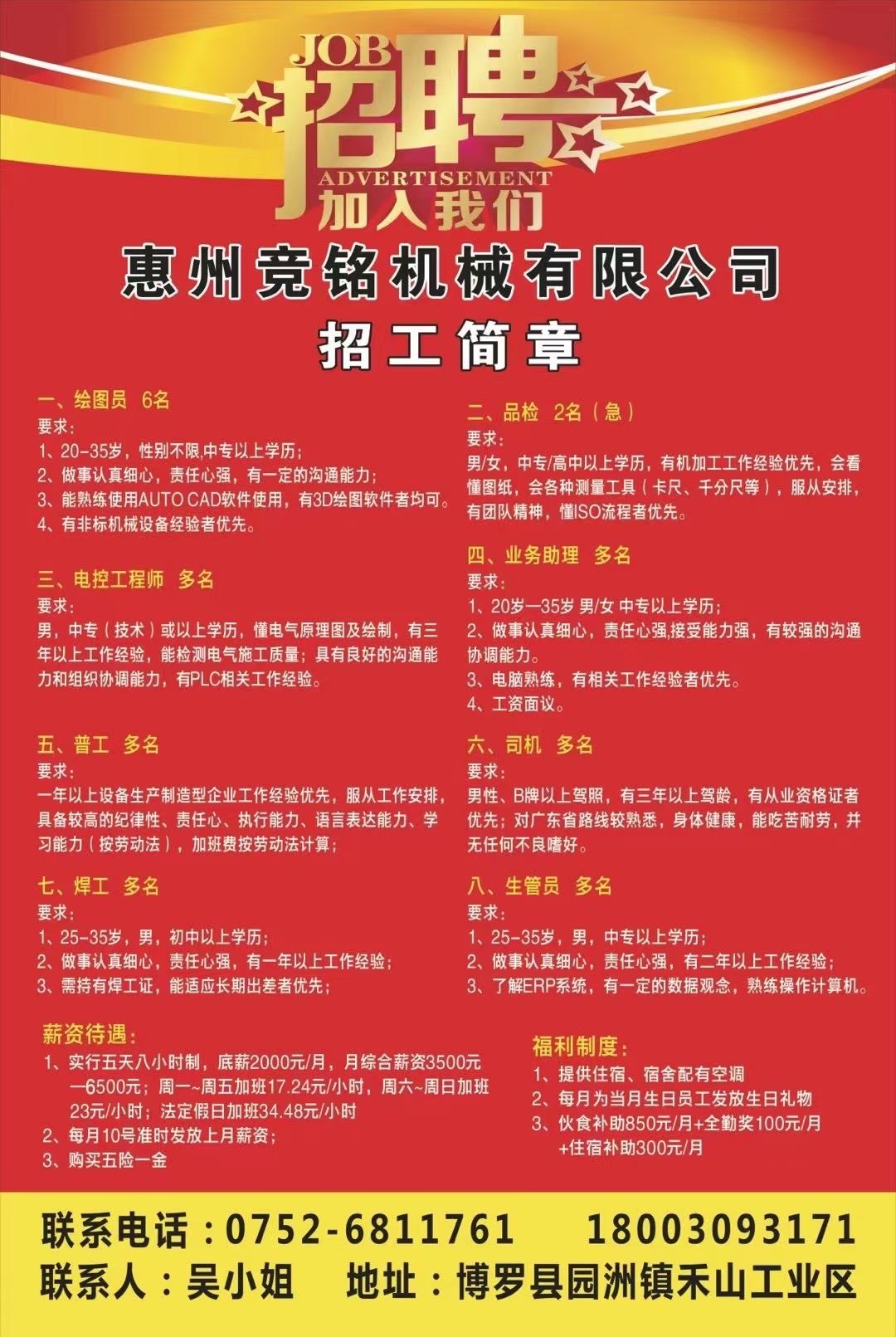 联系电话:吴小姐:18003093171,公司座机:0752—6811761