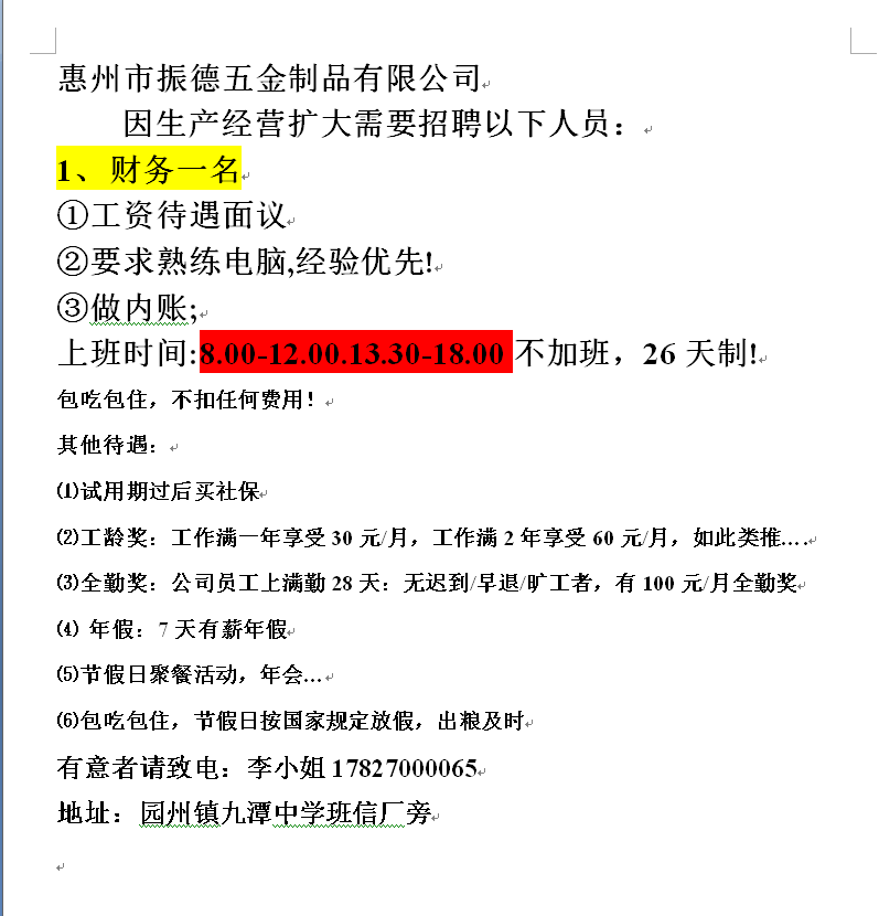振德招聘财务一名!