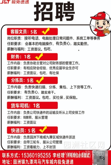 【极兔速递】招聘操作员 快递员 客服文员