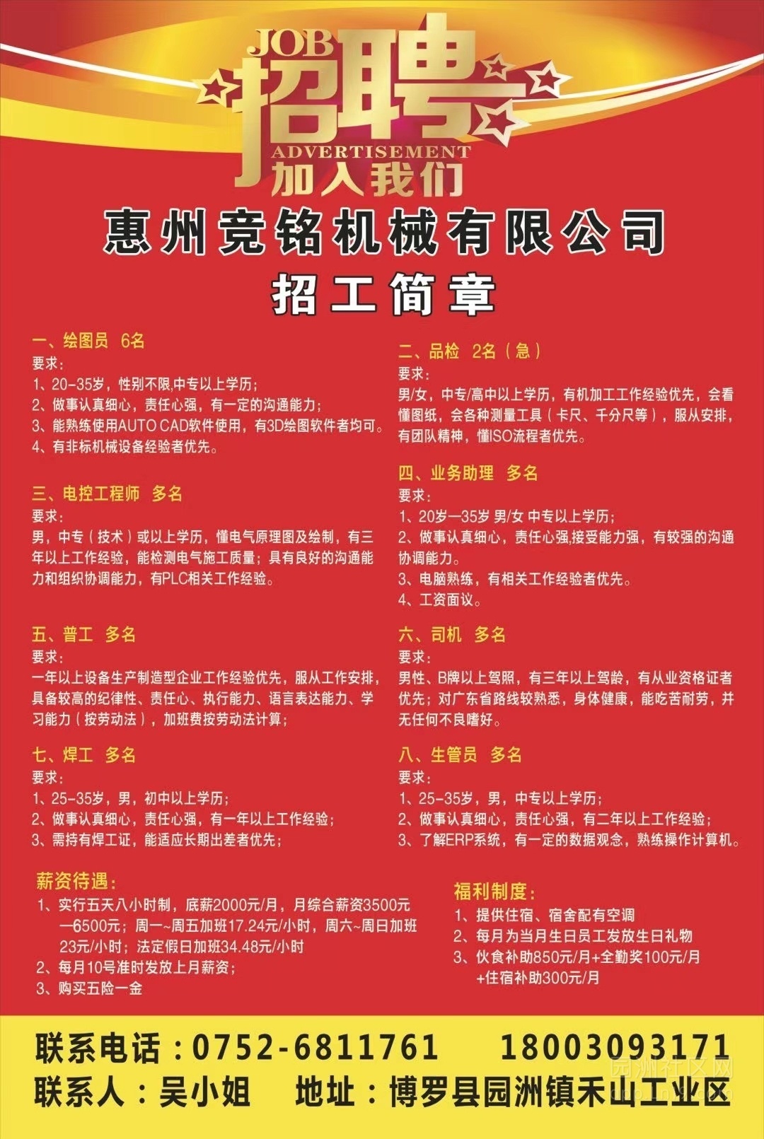 联系电话:吴小姐:18003093171,邱小姐:15089297009,公司座机:0752—6811761