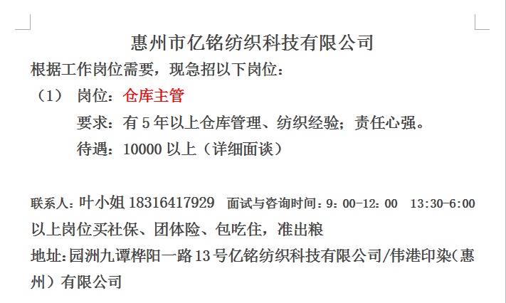 招仓库主管,有意向请致电