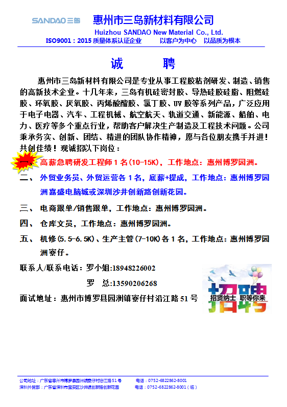 公司名称:惠州市三岛新材料有限公司