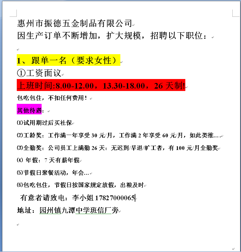 招聘跟单一名!不用加班,26天制!