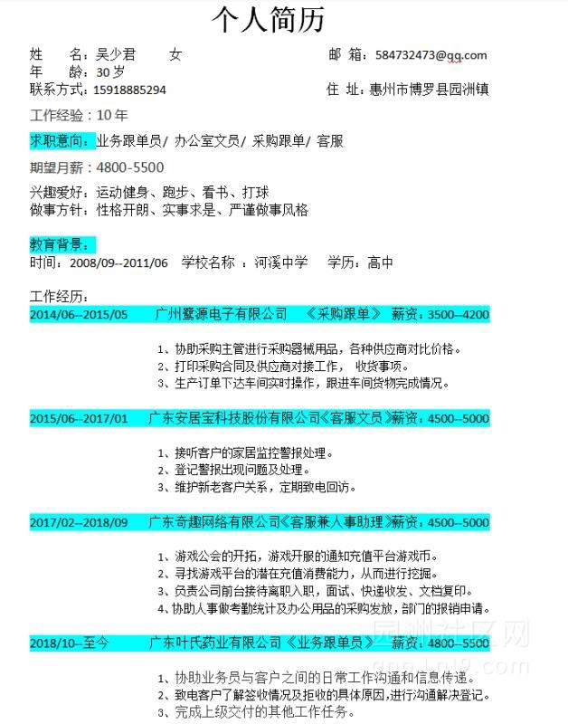 1、跟单文员(女) 2名,工资4000+提成(只要愿意学,没经验生手也行,有人带)