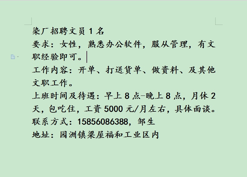 招聘文员一名