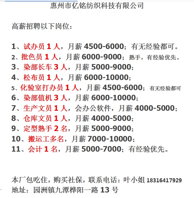 招聘以下多岗位,欢迎致电