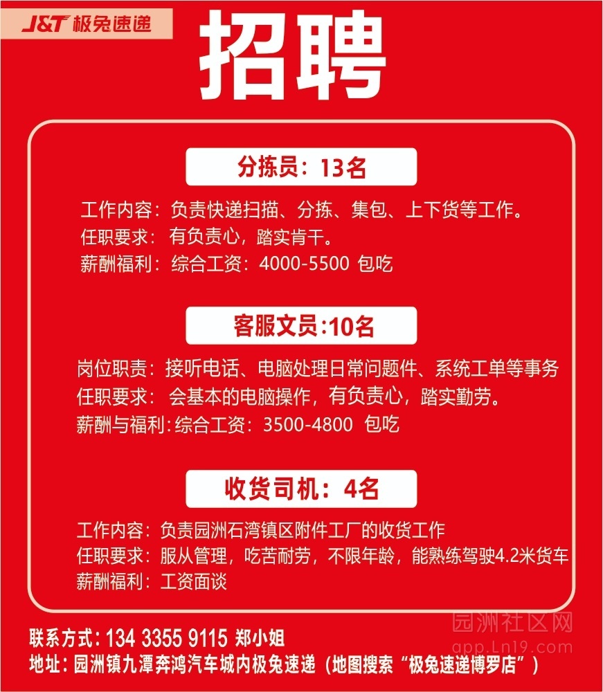 【极兔速递招聘】客服文员 收货司机 分拣员