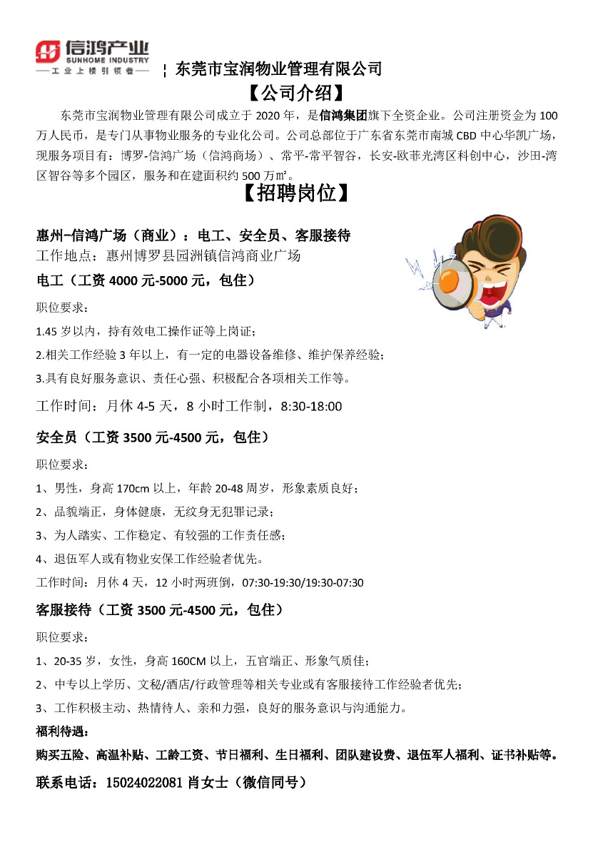 信鸿广场招聘客服接待多名