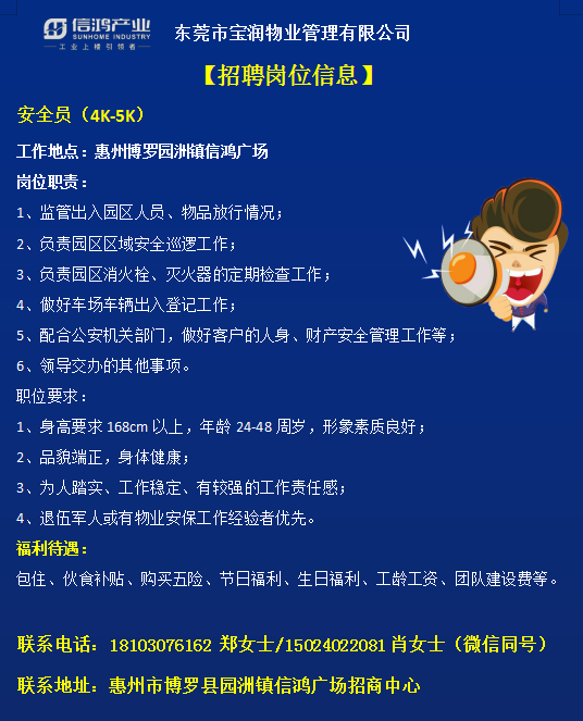 信鸿广场招聘电工、保安