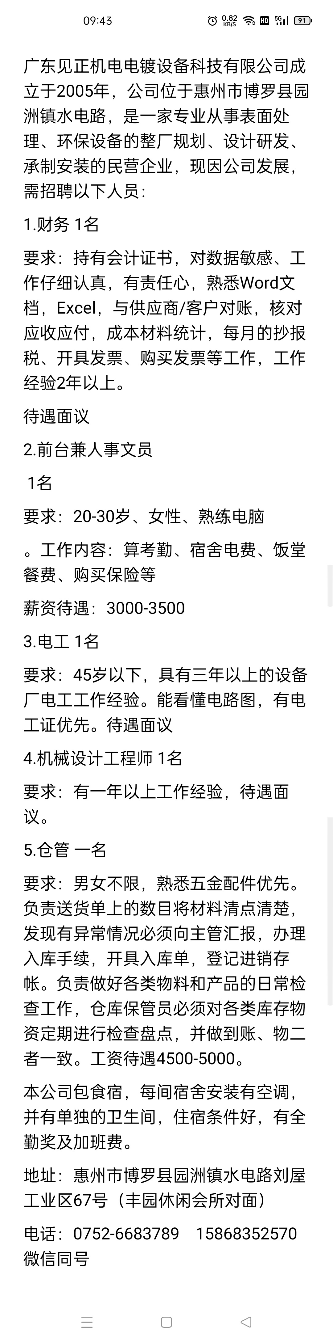【公司招聘】诚聘财务,前台,仓管一名。