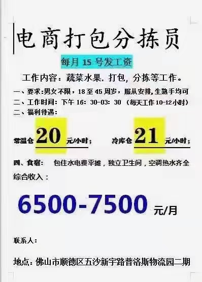 工作内容:蔬菜水果打包,分拣等工作。