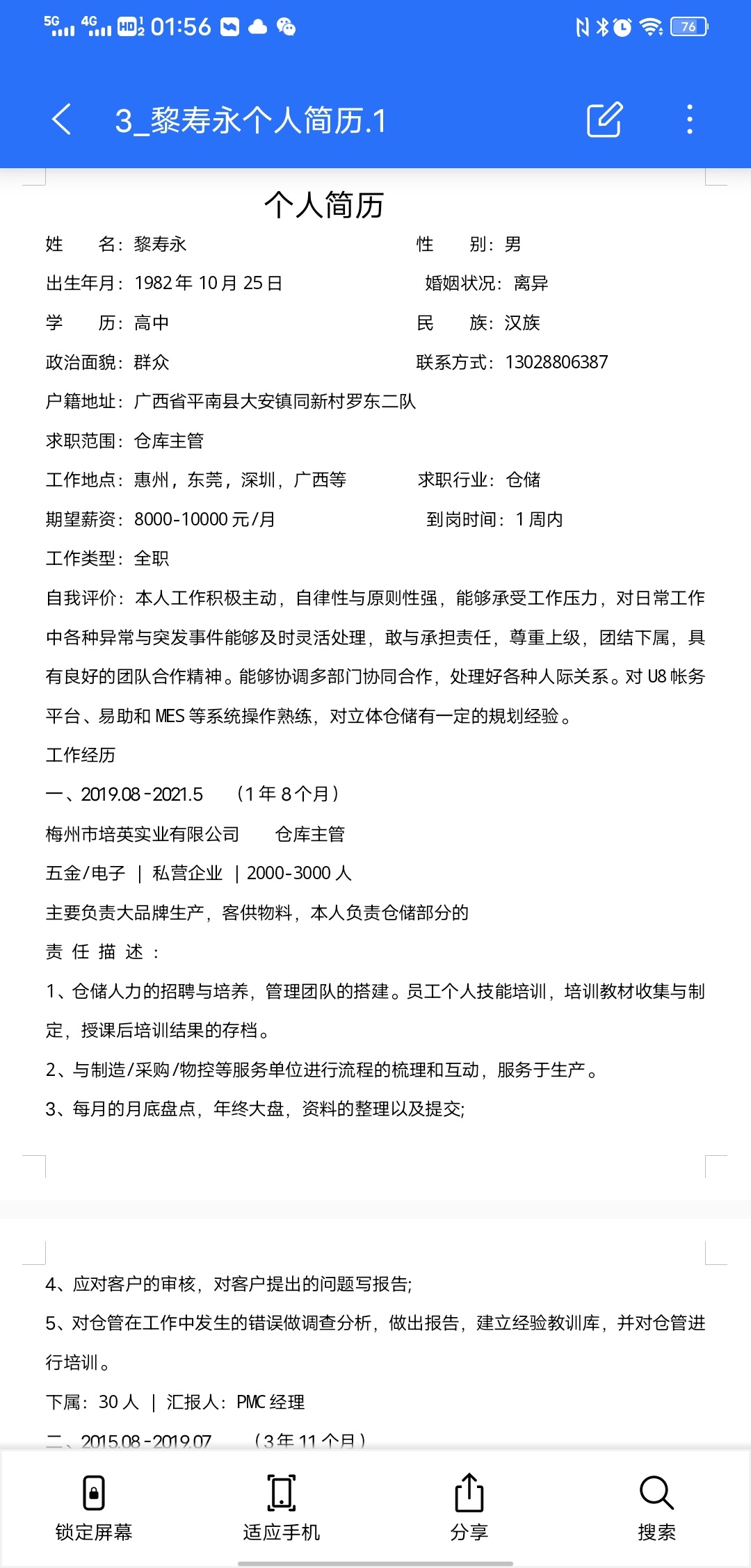 4.熟悉Auto CAD,Office系列办公软件。