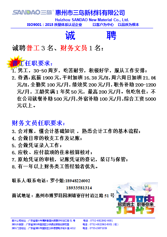 普工、财务文员!