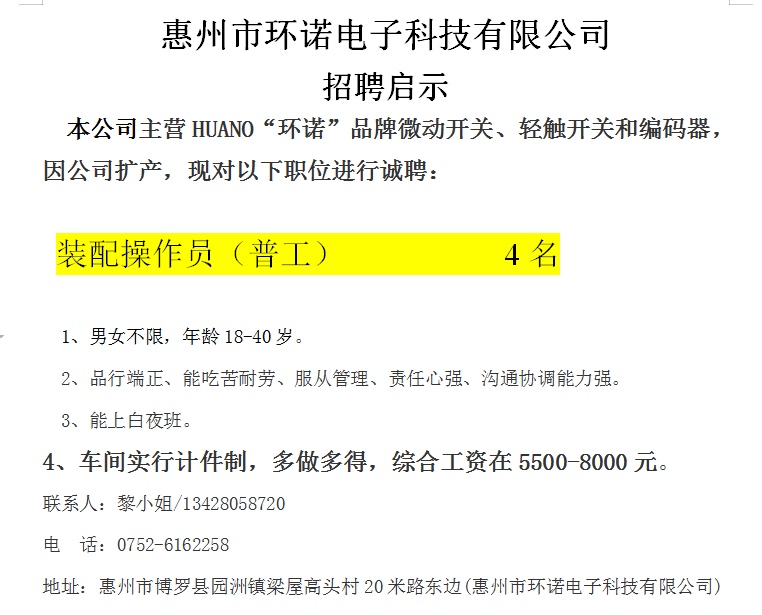 环诺厂招普工