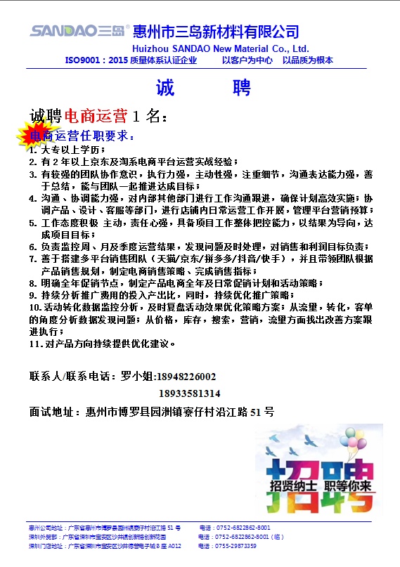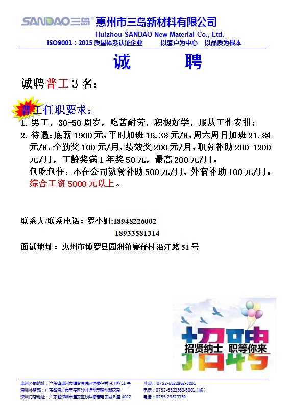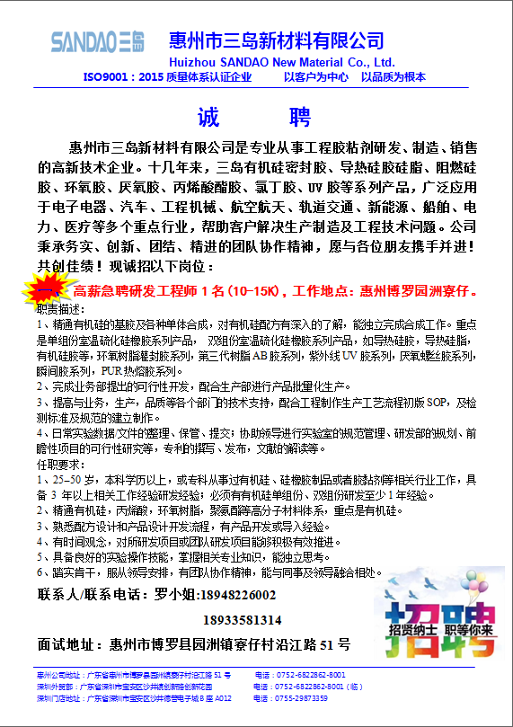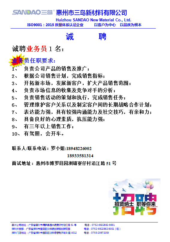 公司名称:惠州市三岛新材料有限公司