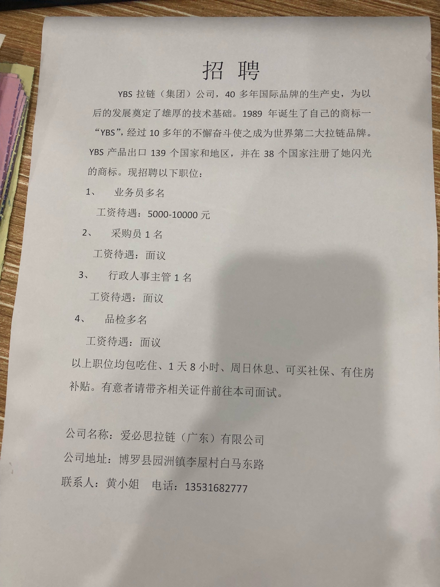 公司急聘以下职位