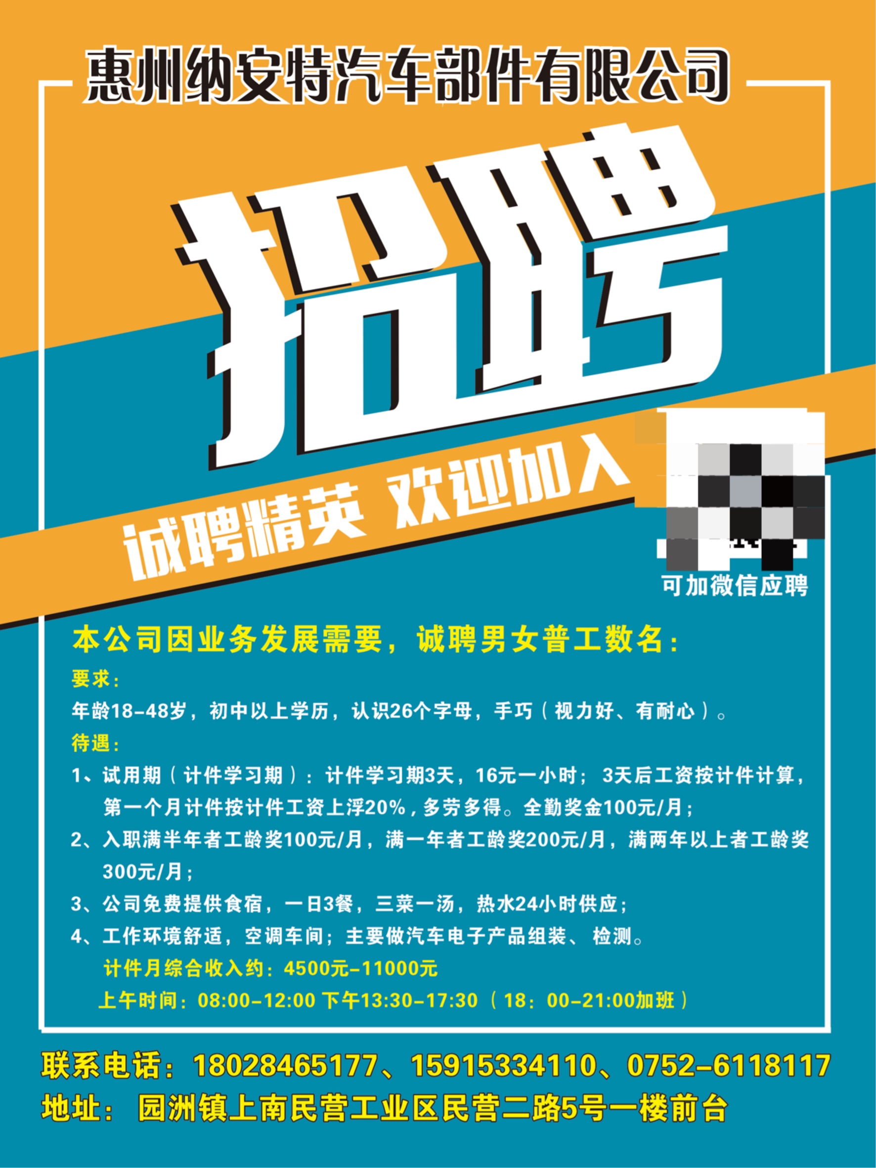 急聘 女普工多名